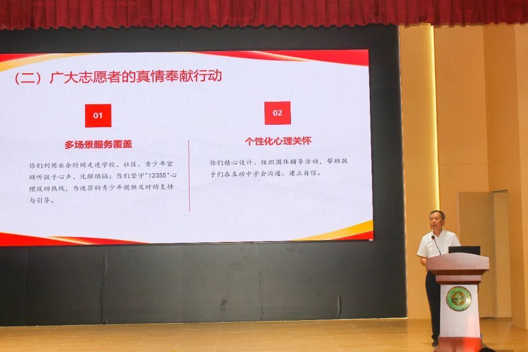 顾作义在活动仪式上指出,青少年心理健康是社会关注的重要课题,需以“专业化、规范化”打造志愿服务队伍,以“体系化、精品化”构建课程体系,以“数字化、协同化”搭建服务平台。他强调,要总结“科学引领、需求导向、模式创新、资源整合、文化涵育”五大经验,推动形成“党委领导、政府负责、部门协同、社会参与”的工作格局,为青少年健康成长营造温暖包容的社会环境。